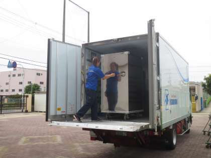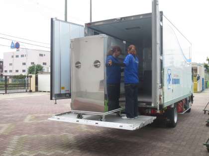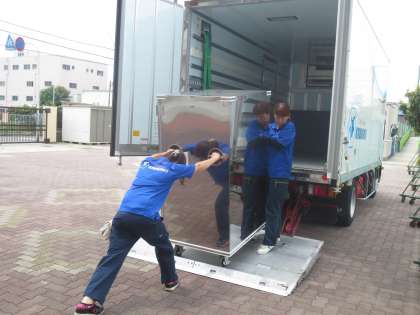 11時15分頃から配送しはじめ、新巽中学校の昼食時刻には配膳されています。「おかず」が直ぐにさめない食缶で配送しますので、生徒に温かい食事が提供されます。
