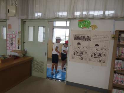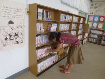 今日の学校図書館ボランティアの方は植田さんです。本の整理等もしていただいています。運動会の練習で体操服に着替えていて時間が少しだけ・・・でも本が好きな子は時間ぎりぎりにやってきます。