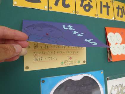 保健室前の掲示物をめくると、その答えがわかります。自分の体を守ることは大切です。自分でできることはまず自分で!