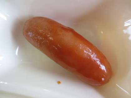粗挽きのフランクフルトをゆで、ケチャップ、デミグラスソース、ウスターソースで作ったタレをかけています。