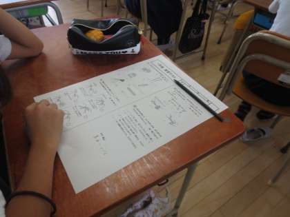 小中連携を進めている新巽中学校より、家庭科指導に米澤陽子先生に来ていただいています。