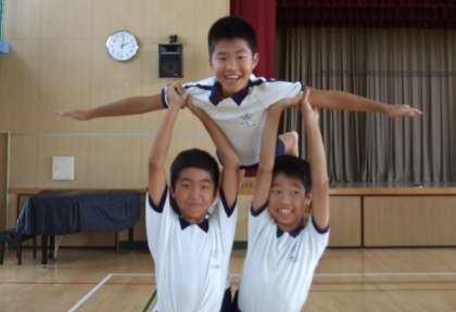 6年生も、今日は体育館で組体操の5人技の練習をしていました。