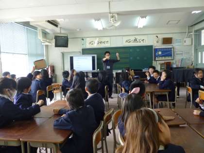 本日よりC−NETのAndrew Chin-Wee先生が、毎週金曜日に英語活動の指導に来られます。5年生の教室でとても楽しく活動していました。
