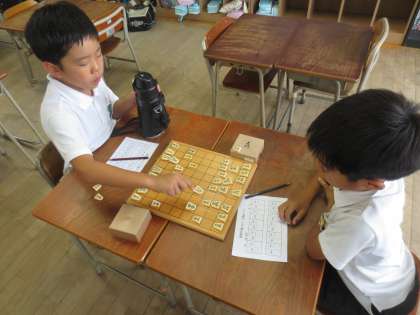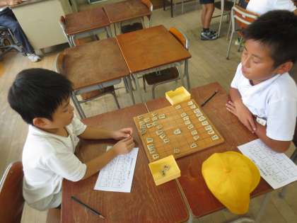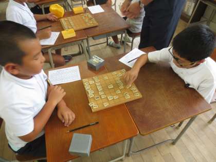 まだ駒の動かし方を覚えていない子どもたちは、覚えている子どもに教えてもらいながら少しずつ対戦ができるようになってきています。