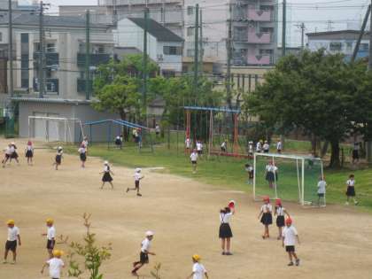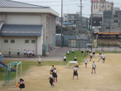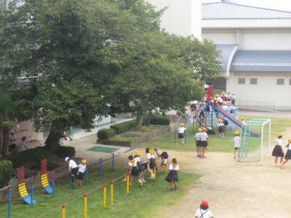 チャイムが鳴り運動場に急いでおりてきます。子どもたちは、思い思いに遊び方を工夫し、友だちと楽しく過ごします。とても大切な時間です。