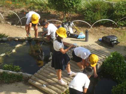 9/8(金)放課後、小川でザリガニ釣りをしていました。この小川には、アメリカザリガニのこども、シマドジョウ、ヤゴなどがすんでいます。子どもたちの釣りは・・・一匹も釣れなかったようです。