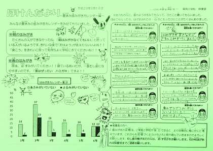 夏休みの歯みがきカレンダーを集め、保健室の桂先生が、集計や保護者の方々の一部感想をまとめています。歯みがきは、健康生活に大切な習慣です。ご参考にご覧下さい。