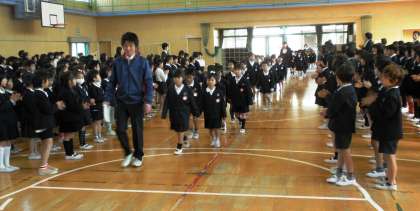講堂に、全校児童が集まるのははじめてです。