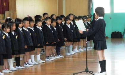 一年生は、児童代表の「歓迎のことば」を一生懸命聞いていました。