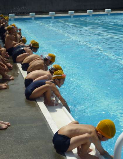 午後から天気が崩れ寒くなるのでは、と心配でしたが、プールサイドのコンクリートは焼けるような熱さ。そんな晴天の中、3・4年生一緒にプール開き。