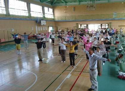 準備運動のラジオ体操後、スリーアイズ大会の開始です。