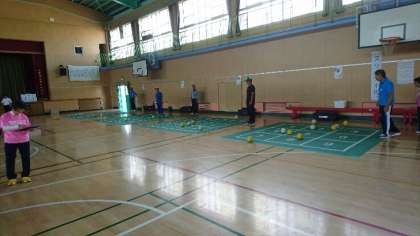「スリーアイズ大会」は、AコートからDコートの4つのグループに分かれます。各グループでリーグ戦を実施し、各コートでの順位を決定します。
