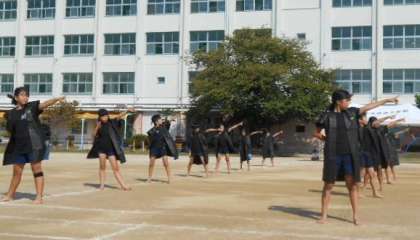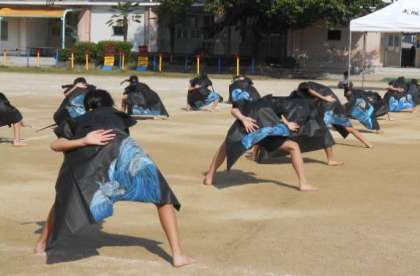 自分たちで衣装に絵を描いています。テンポの速い動きで、力強く踊っています。汗を流しながら一生懸命に踊っている姿に、こちらも元気づけられるようです。