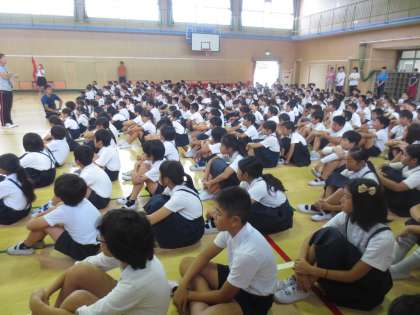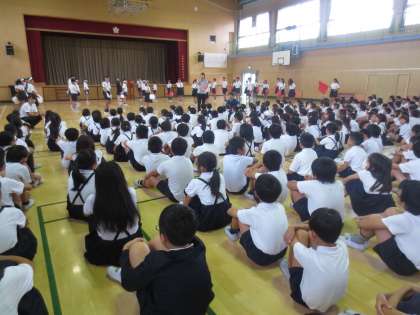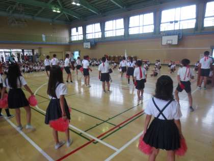 応援の指導をしている桑原先生から、みんなの協力があってこそ、素晴らしい応援になります。そして、運動会では、みんなの応援合戦に対し、きっと大きな拍手がありますとお話がありました。