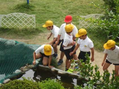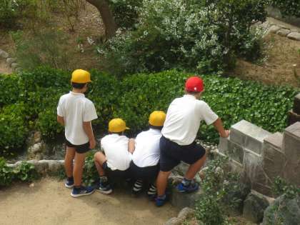 今日も小川の周辺に子どもたちが集まっています。アメリカザリガニをさがしている子どもたちです。あちらこちらへと動いているので、小川にはまらないように声かけはしましたが・・・