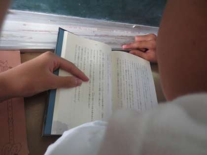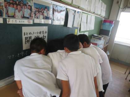 6年生の休み時間教室です。男の子たちが集まり何かを見ていました。近づくと1冊の小説をみんなで・・・本好きの子どもたちは1冊しかないので、みんなで集まって読んでいたのです。すごいです。