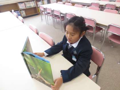 金曜日は、学校図書ボランティアの中川さんに来ていただいています。図書館は毎日20分休憩時に、ボランティアの方々に開放していただいています。