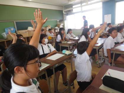 たくさんの意見が出て、児童会の取り組みを真剣に話し合っています。担当者の奥田先生、桑原先生、上野先生の指導で、20分の休憩時間に話し合いをしています。