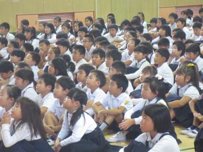 どの児童も凛々しく、しっかりと自己紹介ができていました。たのもしい後期児童会のメンバーに期待しています。また、発表をきいている児童たちも協力をしてくれるはずです。
