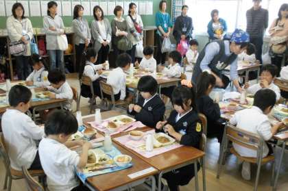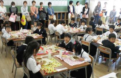 初めての参観は、給食参観でした。