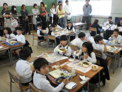 1年生のお昼の様子を、ほほえましくご覧いただきました。