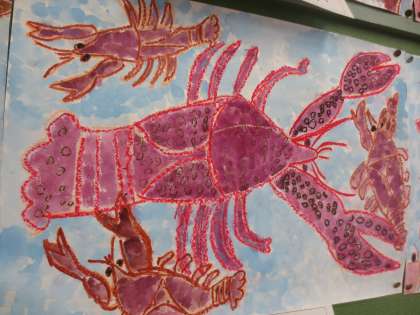 子どもたちは毎日、アメリカザリガニを観察しています。足やハサミの動きもしっかりみています。