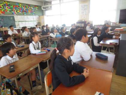 水曜日はイングリッシュタイムがあります。短時間ですが毎週水曜日にしています。5年生と6年生は週1回の授業がありますが、1〜4年はこのイングリッシュタイムで英語に少しずつ慣れていっています。来年度から3年生と4年生は、もう少し英語の時間が増えるように計画をしていきます。