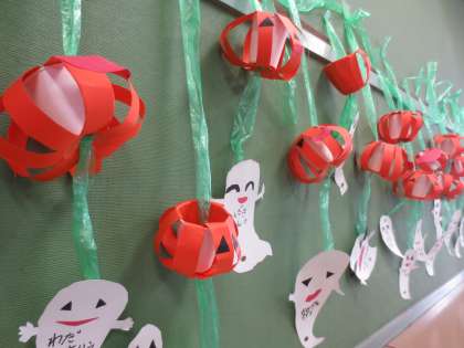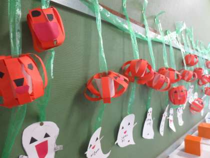 2組の教室にも可愛いハロウィンの「カボチャおばけ」が掲示されていました。