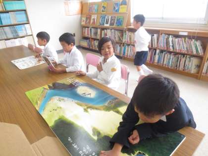10/13金曜日は、学校図書ボランティアの春山さんに来ていただいています。