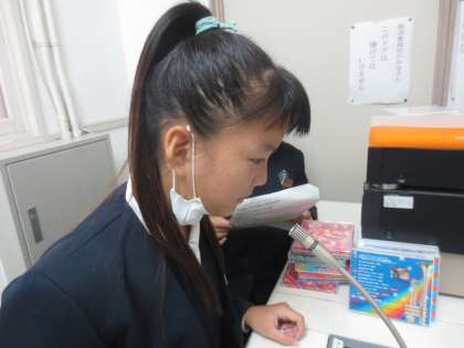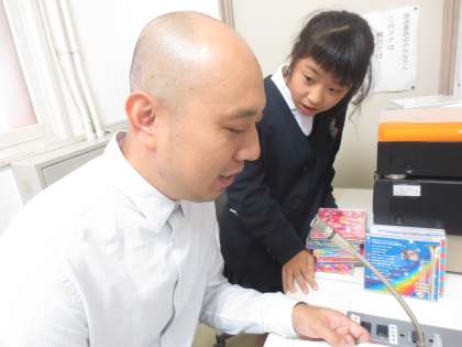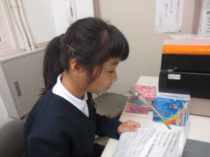 毎週金曜日、給食の時間に英語で献立を紹介します。まず放送委員会の児童が英語で・・・そのあと、英語のカーン先生が同じ献立を英語で紹介します。