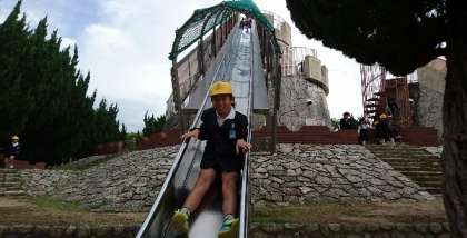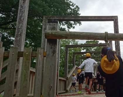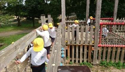 細長いすべり台やアスレチックの遊具で思いっきり遊びました。