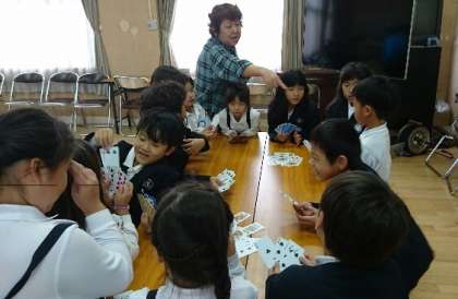 10月25日(水)20分休憩に、多目的室で、はぐくみネットのボランティアの方々による「トランプ遊び」をしました。1年生の子どもたちは、ルールを守り仲良く楽しく遊んでいました。