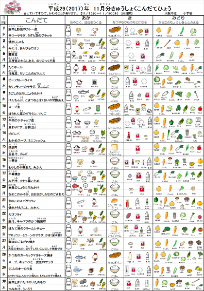 11/1 11月給食献立表・はぐくみ通信・給食だより
