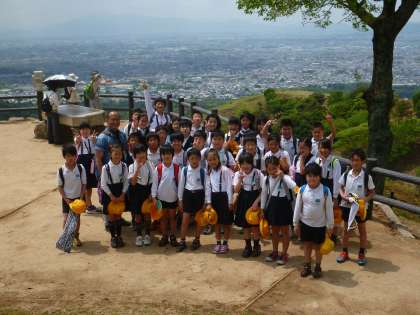 1組と2組の集合写真です。元気いっぱいに遠足を楽しんでいました。