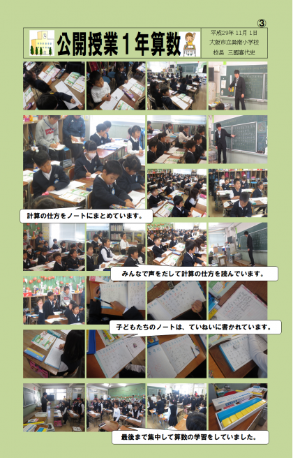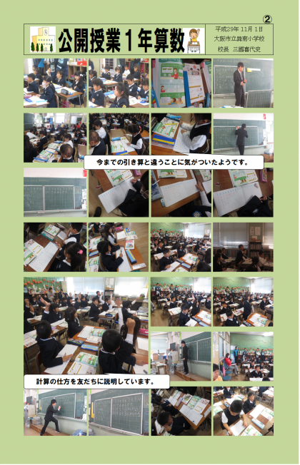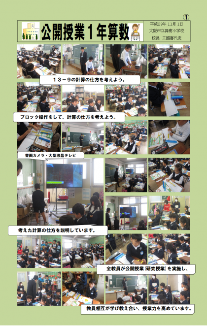 校内において11/1(水)公開授業(研究授業)を1年2組(算数科の授業)で実施しました。授業を参観することで教員相互が学び教え合い、各教員が授業力を高める機会にしています。