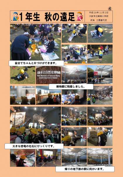 大阪市自然史博物館では、大きな恐竜の化石を見てびっくりしていました。