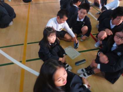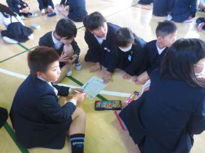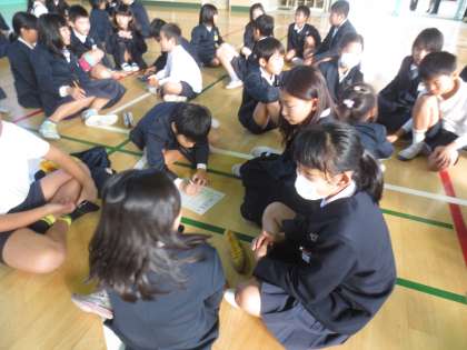 子どもたちは「難しい」「難しい」と言いながら楽しんでいました。全問正解の縦割り班もありました。