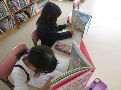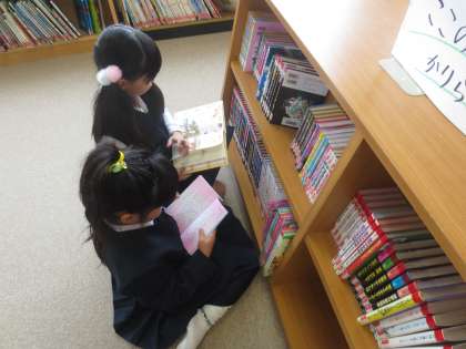 木曜日は学校図ボランティアの大久保さんに、図書館を開放していただいています。今日は天気も良く、多くの子どもたちが運動場で遊んでいます。でも本が好きな子は図書館に来てくれます。