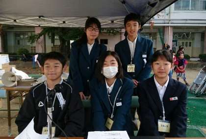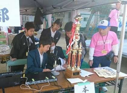 今日一日、新巽中学校の生徒会が、アナウンスのボランティアをしてくれました。その他、ラグビー部の中学生が朝早くからテントを立てるなど会場の準備に活躍してくれました。