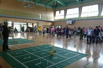 体育館ではスリーアイズ大会が行われました。巽南小学校の子どもたちは、10チーム参加しました。