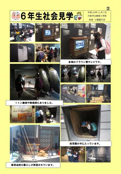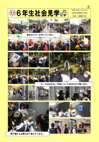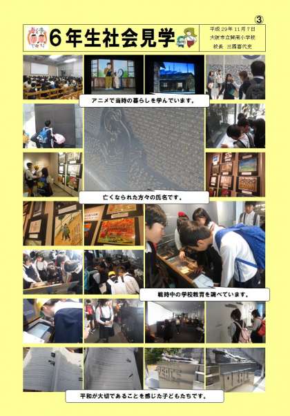 11/7(火)社会見学に行きました。最初の見学先は、「ピースおおさか」(大阪国際平和センター)で、大阪市中央区の大阪城公園内にある、戦争と平和に関する調査研究や展示を行っている施設です。