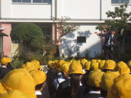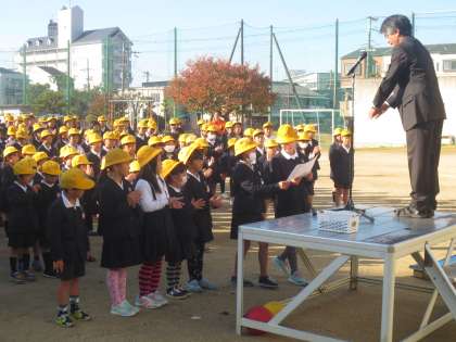 玉田先生より今週の生活目標等のお話がありました。11月の生活目標は「すすんであいさつをしよう」です。校長先生から11/11(土)東部子ども民族文化祭に出場した国際クラブの子どもたちの頑張りをお話して、感謝状をわたしました。そして、昨日の「巽南わくわくレクリェーション」の取り組みをしていただいた地域の方々への感謝をお話しました