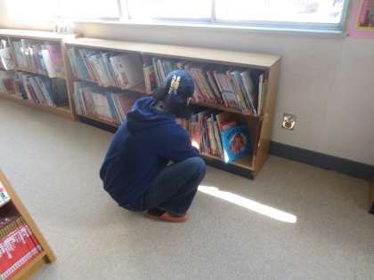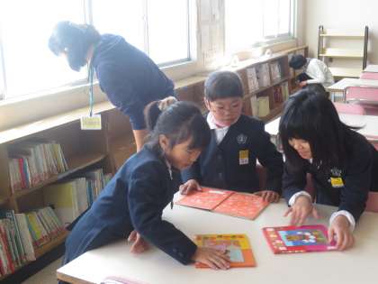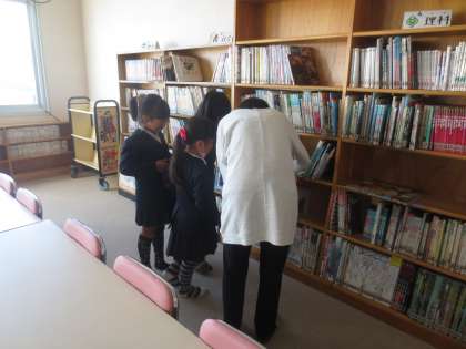 毎週、水曜日は学校図ボランティアの植田さんに図書館を開放していただいています。本の整理や修理、図書の貸出・返却をしていただいています。また、はぐくみネットの方にもご協力をいただいています。本が好きな子はいつも図書館にやってきます。新しい本を手にとりさらに興味を高めています。