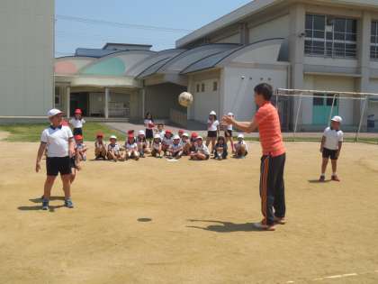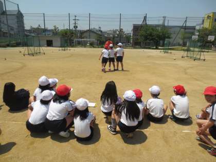 「ハンドボール」の学習です。しっかりと話を聞き、ルールを覚え、動きを知り、協力し合ってゲームをしています。