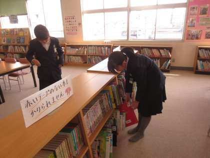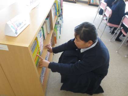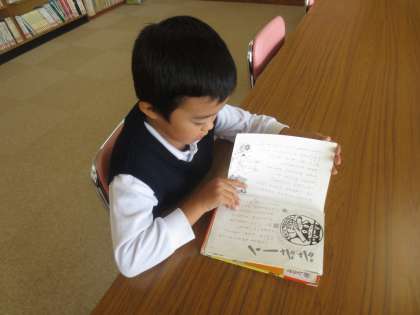 本の整理や修理、図書の貸出・返却をしていただいています。本が好きな子はいつも図書館にやってきます。新しい本を手にとりさらに興味を高めています。