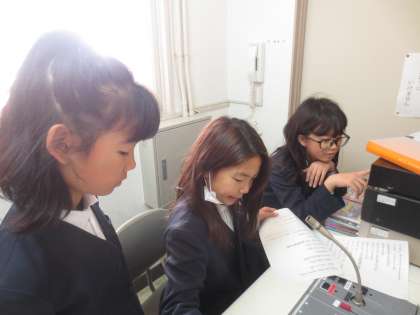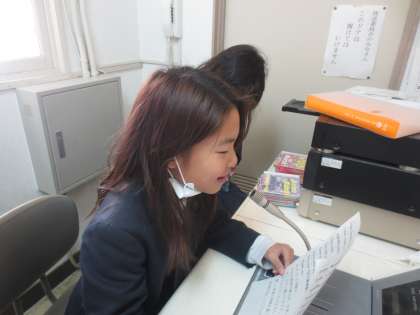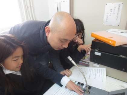 毎週金曜日、給食の時間に英語で献立を紹介します。まず放送委員会の児童が英語で・・・そのあと、英語のカーン先生が同じ献立を英語で紹介します。