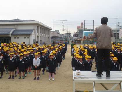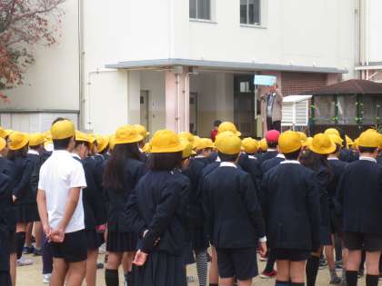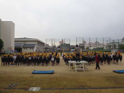 阪口先生より今週の生活目標等のお話がありました。11月の生活目標は「すすんであいさつをしよう」です。校長先生から11/18(土)作品展をご覧になった保護者の方々が、子どもたちの作品をほめてくださったこと、一人一人が一生懸命に仕上げた作品には、力強さを感じ頼もしく思われたことを、子どもたちにお話をしました。