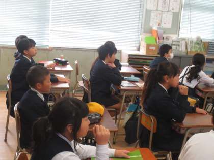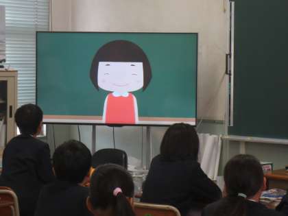 毎週水曜日の朝、全校でイングリッシュ・タイムを実施しています。低・中学年も少しずつ英語に関心をもってもらうため、英語の歌やゲームで楽しく取り組んでいます。高学年は英語活動の時間とこの「イングリッシュ・タイム」で、英語に親しんでいます。