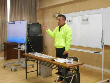 生野区納税協会により「税」についての教室を開いていただきました。所得税・法人税・消費税などの内容や、税が必要である理由についてわかりやすく教えていただきました。