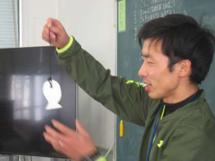 「オナモミ」(ひっつきむし)を使い、魚つりをします。子どもたちは大喜びです。